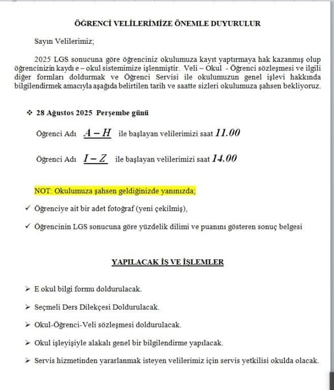 2025 LGS SONUÇLARINA GÖRE OKULUMUZA KAYIT HAKKI KAZANAN ÖĞRENCİ VE VELİLERİMİZİ 28 AĞUSTOS 2025 PERŞEMBE GÜNÜ BEKLİYORUZ DETAYLI BİLGİ VE KILAVUZA ERİŞİM İÇİN TIKLAYINIZ